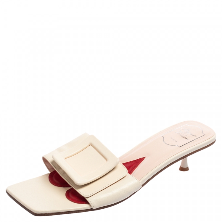Roger Vivier Cream Leather Covered Buckle Mules Size 41