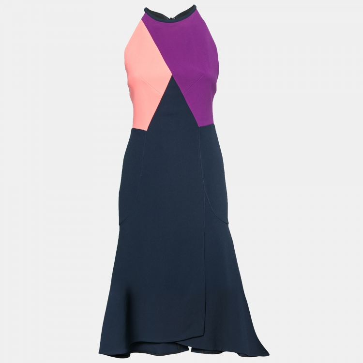Pre Owned Roland Mouret Color Block Stretch Crepe Kennard Halter Dress M