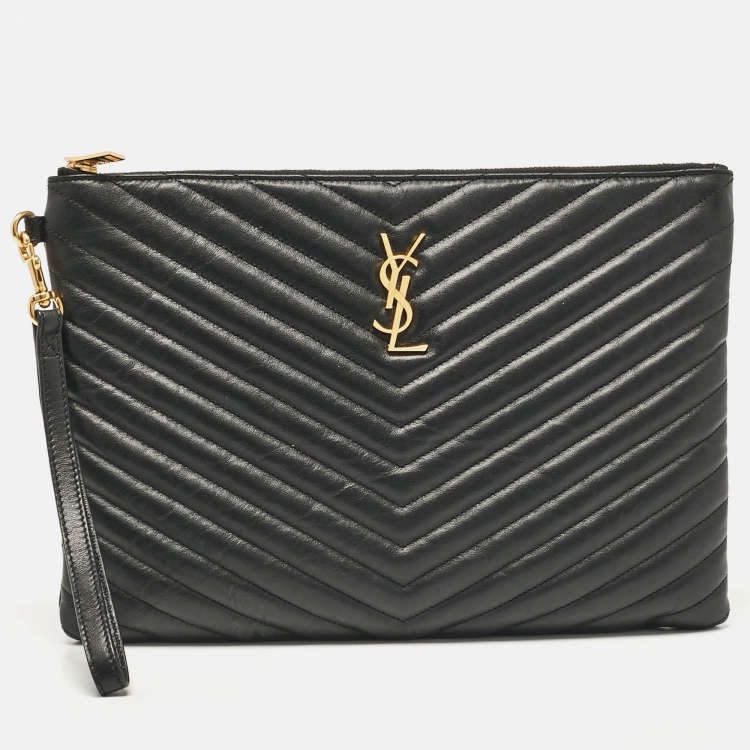 Pre Owned Saint Laurent Black Matelassé Leather Cassandra Tablet Pouch