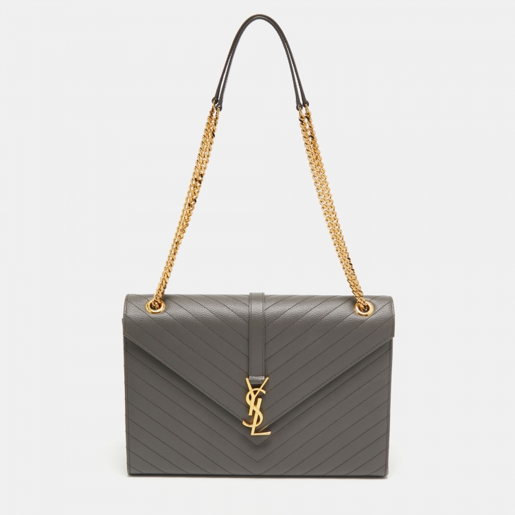 Saint Laurent Grey Matelassé Leather Large Cassandre Flap Bag