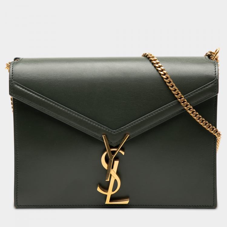 Pre Owned Saint Laurent Paris Green Smooth Calfskin Monogram Cassandra Clasp Bag