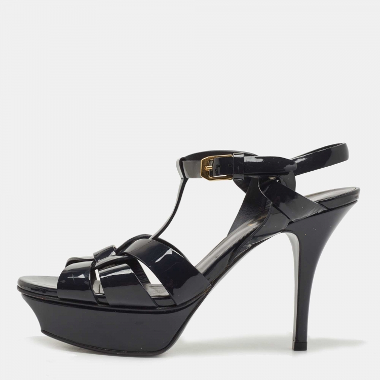 Pre Owned Saint Laurent Paris Navy Blue Patent Leather Tribute Sandals Size 36