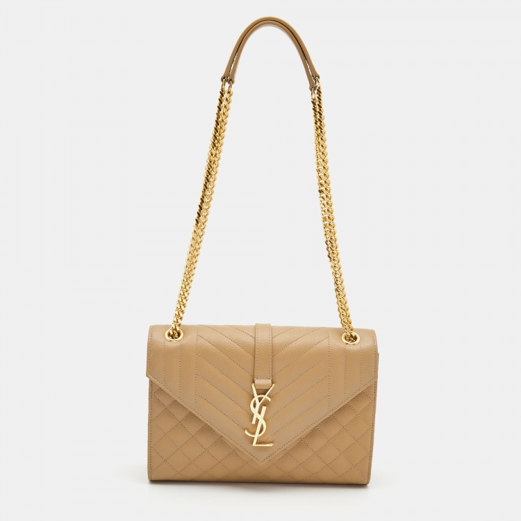 Saint Laurent Tan Mix Matelasse Leather Medium Envelope Chain Bag