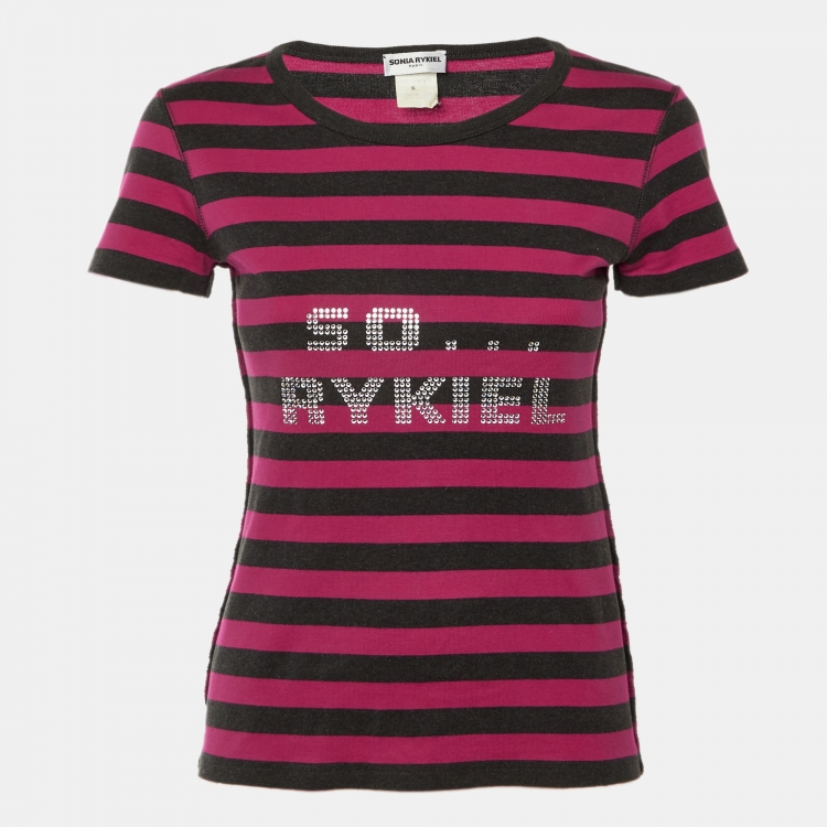 Sonia Rykiel Pink Striped Cotton So Rykiel Embellished T-Shirt S