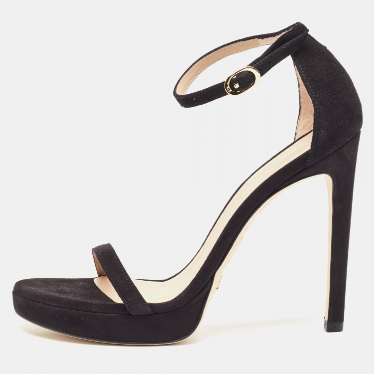 Stuart Weitzman Black Suede Nudist Disco Platform Sandals Size 37