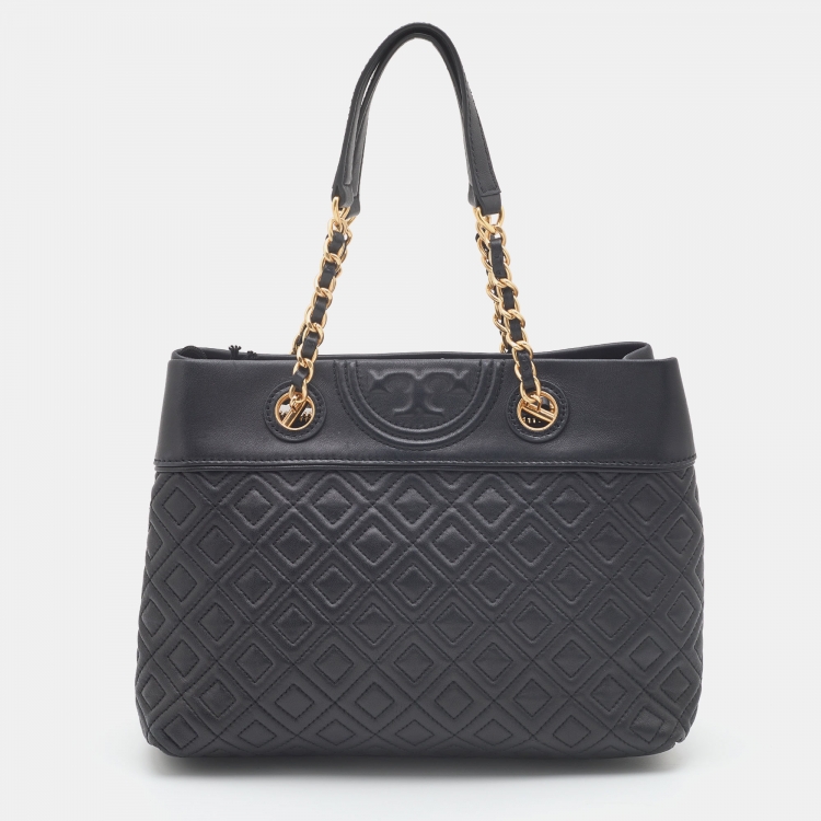 Tory Burch Black Quilted Leather Fleming Chain Tote