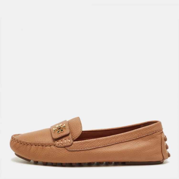 Tory Burch Brown Leather Kira Slip On Loafers Size 37