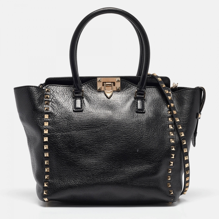 Valentino Black Leather Small Rockstud Trapeze Tote