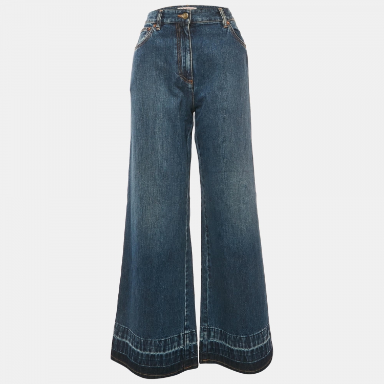 مملوكة مسبقًا Valentino Blue Denim V Embellished Wide-Leg Jeans M Waist 29"