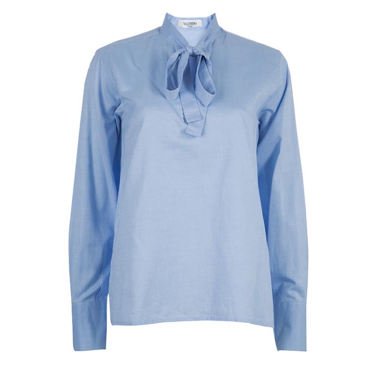مملوكة مسبقًا Valentino Blue Tie Neck Long Sleeve Shirt M
