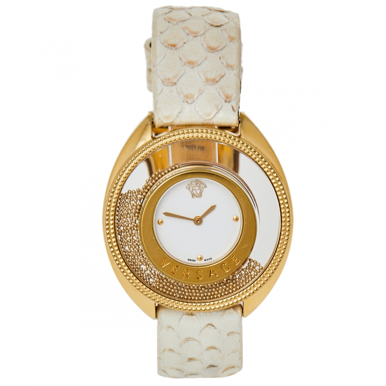 Gold Plated Stainless Steel, Python Leather