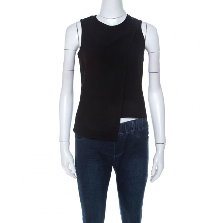 Pre Owned Versus Versace Black Asymmetric Sleeveless Wrap Top S