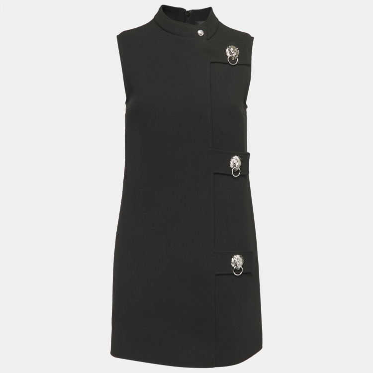 Versus Versace Black Crepe Logo Detailed Sleeveless Mini Dress S