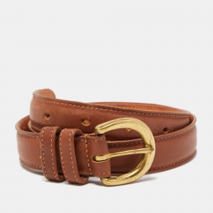 Coach Tan Leather Slim Buckle Belt 70CM