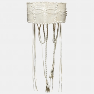 Gianfranco Ferre White Ostrich Leg and Leather Braided Corset Belt