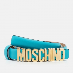 Moschino Turquoise Blue Leather Classic Logo Belt 90 CM