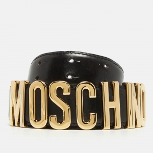 Moschino Black Leather Logo Charm Waist Belt 70CM