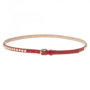 Valentino Sky Red Leather Studded Skinny Belt 75 CM