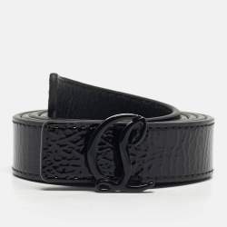 Christian Louboutin Black Croc Embossed Leather CL Logo Belt 80 CM