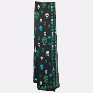 Alexander McQueen Black/Green Skull Print Silk Scarf