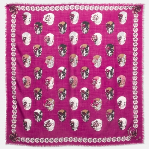 Alexander McQueen Balck & Pink Skull Printed Silk Scarf