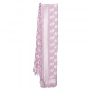 Alexander McQueen Lilac Skull Printed Modal Fringed Scarf