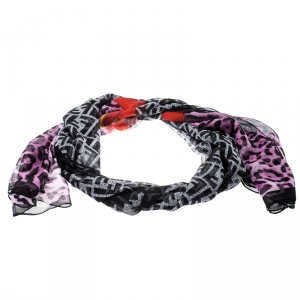 Fendi Black and Grey Silk Logo Detail Shawl