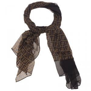 Fendi Brown Zucca Monogram Print Silk Stole