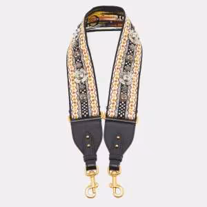 Dior Bag Shoulder Strap Black Embroidered Canvas