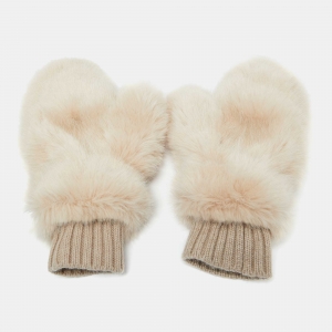 Givenchy Ivory Cashmere & Faux Fur Mittens