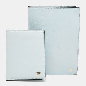 Tom Ford Light Turquoise Leather TF Passport Holder and Card Case Set