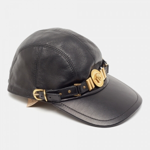 Versace Tribute Black Leather Medusa Medalion Baseball Cap Size 57