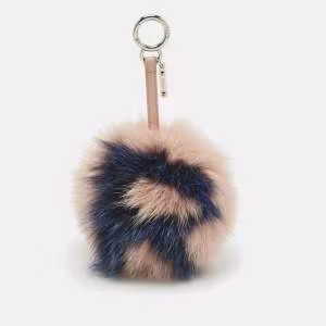 Fendi Pink/Blue Fox Fur and Leather Alphabet R Ball Bag Charm