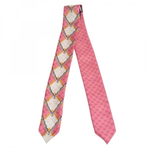Gucci Pink Embroidered Pineapple Detail Silk Tie