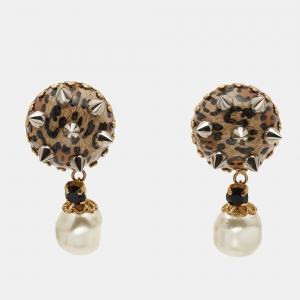 Dolce & Gabbana Composite Painting Crystals Gold Tone Earrings