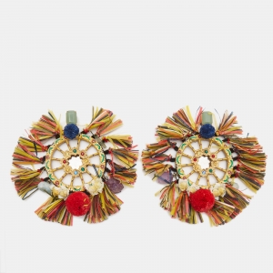 Dolce & Gabbana Multicolor Pom Pom & Tassel Oversized Clip On Earrings