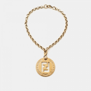 Fendi Gold Tone Chain Link Lock & Key Bracelet