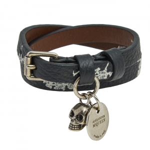 Alexander McQueen Skull Print Silver Tone Metal Double Bracelet