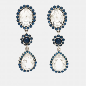 Miu Miu Silver Tone Crystal Drop Clip-On Earrings