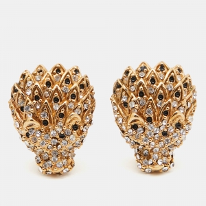 Yves Saint Laurent Gold Tone Crystal Embellished Clip-On Earrings