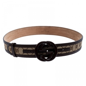 Gucci Beige GG Supreme Canvas Interlocking G Buckle Belt 85CM