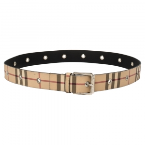 Burberry Beige/Metallic Grey Check Canvas and Leather Belt 100CM