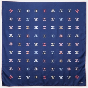 Chanel Multicolor Structural Logo Print Silk Square Scarf