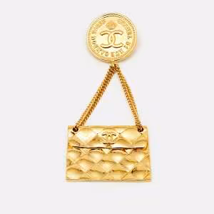 Chanel CC Crown Motif Gold Tone Pin Brooch