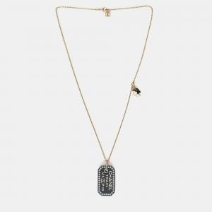 Chanel Black Plastic Coco Chanel Pearl Tag Necklace