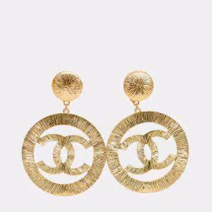Chanel Dangle Hoop Earrings Clip-On Gold