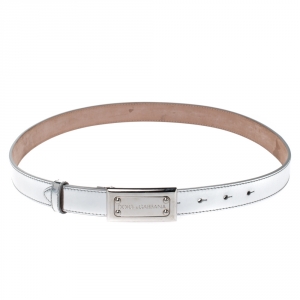 Dolce and Gabbana Silver Leather Crystal Embellished Buckle Belt 95cm