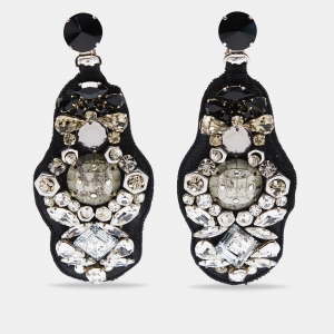 Prada Flower Power Black Plexiglass Crystal Floral Bedecked Link Long Earrings
