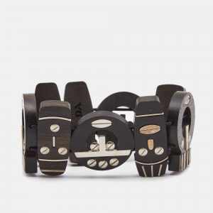 Prada Black Saffiano Leather Signature Logo Cuff Bracelet M