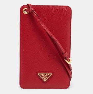 Prada Yellow Saffiano Lux Leather Phone Crossbody Bag